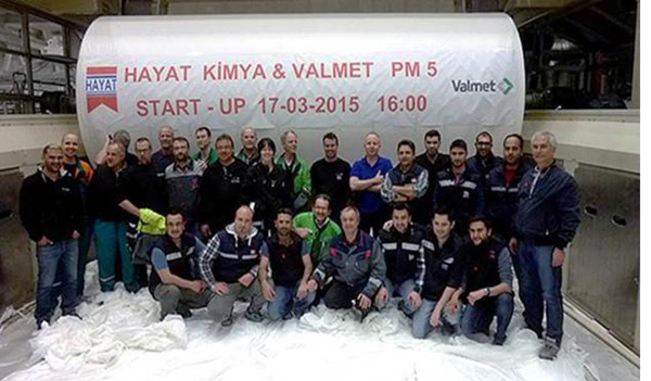 Hayat Kimya's new Advantage DCT 200TS tissue line, PM 5, was started up in March 2015 by a joint Valmet (Finland) and Hayat Kimya (Turkey) team. The new line, at the Mersin mill in Turkey (photo), came smoothly on stream according to schedule and produced sellable paper from the very start.