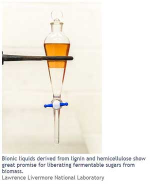 Ionic liquids are powerful solvents that can be used to deconstruct (dissolve) cellulosic biomass into sugars for the production of fuels. The renewable ionic liquid to which Simmons refers is one made from lignin and hemicellulose, two by-products of biofuel production from biorefineries. The discovery of the unique properties of this "bionic" liquid was also led by Singh and Simmons.