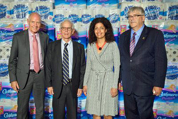 In the photo above are (l-r): Mario Gosselin, CEO, Kruger Products; Joseph Kruger II, chairman of the board and CEO, Kruger Inc.; Dominique Anglade, minister of economy, science and innovation, and minister responsible for digital strategy; and Denis Laporte, Crabtree Mayor. (CNW Group/Kruger Inc.).