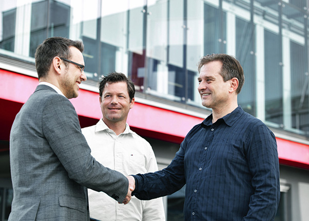 In the photo above: Fewer incorrect orders and faster processing thanks to Voith Paper Webshop. Alain Gafner, maintenance manager at Perlen Papier AG (middle), and Christian Stocker, team leader, technical purchasing at Perlen Papier AG (right), talk about more efficient ordering processes with Michael Thoma, director Global E-Business Solutions, Voith Paper (Ieft).