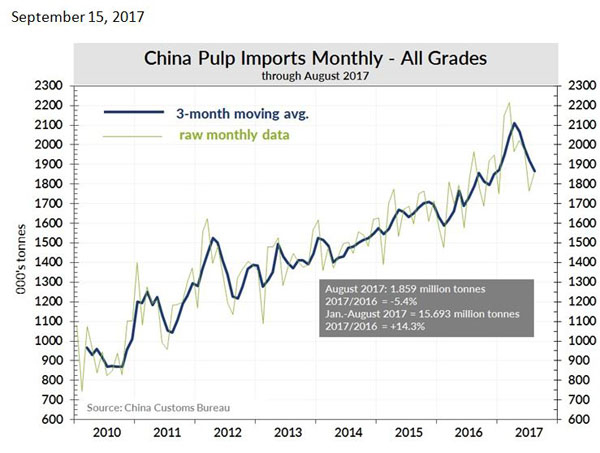 China’s August Pulp Imports Were Down 5.4% ytd; Suddenly up 14+%