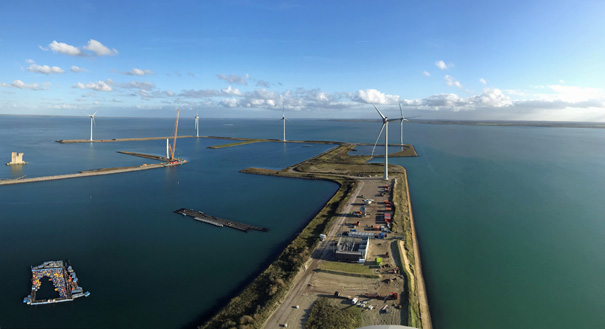 The Bouwdokken wind farm is owned and constructed by E-Connection on the Neeltje Jans artificial island, which is part of the so-called Delta Works - a series of construction projects that protect the southwest of the Netherlands from the sea. Wind Cooperation Zeeuwind is a 25% shareholder of the wind farm, which consists of 7 turbines of 4.2 megawatt each.