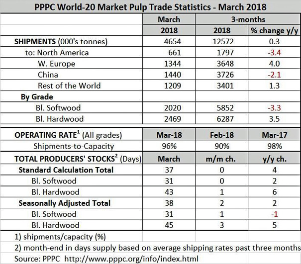 World-20 Pulp Shipments Edge up in Q1 2018
