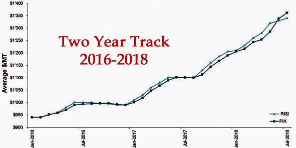 2 & 5 Year Pulp Index: Steep Rise Starts Mid-2016 After Low Monthly Increases