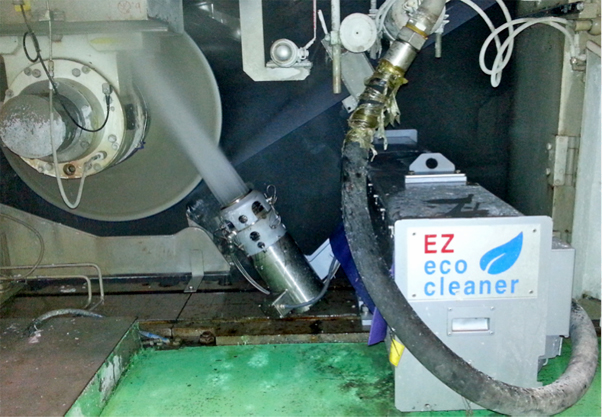 The EZ eco smart cleaner system uses traversing high pressure rotating heads that deliver 150 bar (2,200 psi) operating pressure, plus shear forces from rotation. The 120 mm (4.72 in.) diameter heads deliver twice as much cleaned area in the same amount of time as traditional oscillating showers.