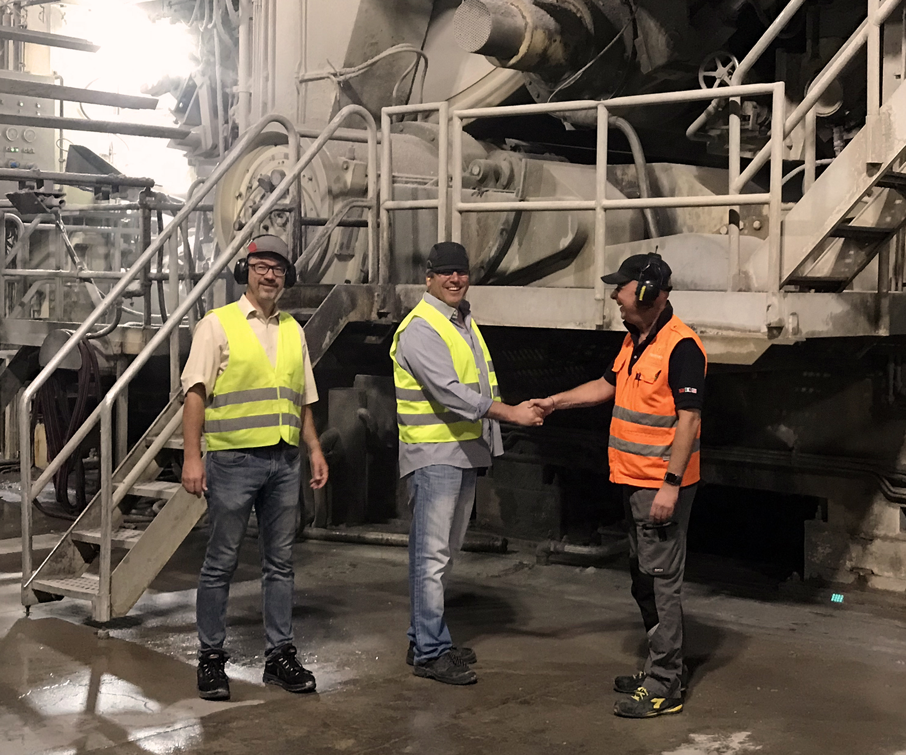In front of PM 1 at Wepa Mainz mill (from left): Per Thorneman, technical manager and project manager at WEPA Mainz, Rene Martin, production manager PM 1 at WEPA Mainz, and Andrea Rossi, steam & hoods senior start-up & service engineer at Toscotec. Back to Tissue360 Newsletter |