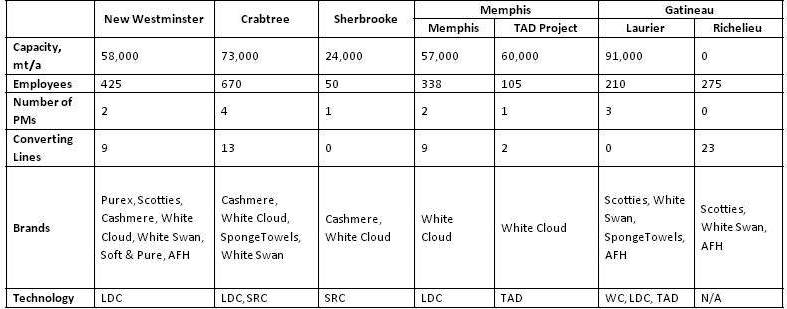 Table 1: KPLP - Tissue Manufacturing and Converting Operations (Source: Company Prospectus)