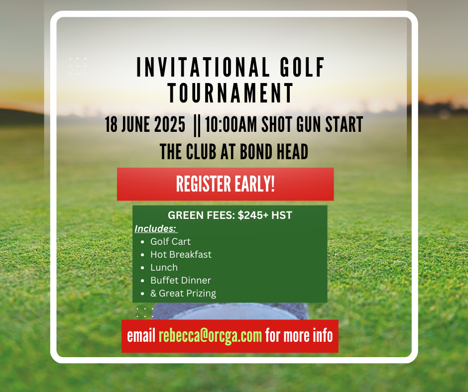 ORCGA INVITATIONAL GOLF TOURNAMENT JUNE 18TH, 2025 REGISTRATION IS NOW OPEN! Tournament will sell out! ORCGA members, watch your inbox for your invite. Are you a member of the ORCGA and did not receive the invitation? Please email rebecca@orcga.com