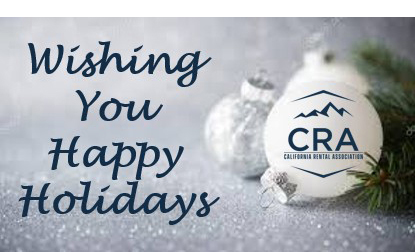 On behalf of the California Rental Association, thank you for all that you do. Warmest wishes for a happy holiday season and a successful New Year.