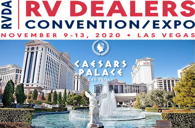 RVDA, the National RV Dealers Association, RVDA of Canada and the Mike Molino RV Learning Center’s 2020 RV Dealers Convention/Expo will be held November 9-13 at Caesars Palace in Las Vegas. The annual event brings together dealers, manufacturers and RV industry business partners for the premier dealer education and networking event of the year.