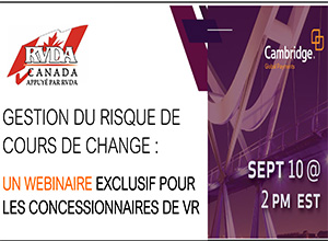 Dans le cadre de ce webinaire, Aaron Young, de Cambridge Global Payment, analysera la façon dont les concessionnaires de véhicules récréatifs peuvent naviguer les complexités des paiements transfrontaliers, notamment à partir des États-Unis, et la couverture de change. Découvrez comment, en tant que concessionnaire, vous pouvez saisir le potentiel de hausse tout en vous protégeant contre le risque de perte en cas de baisse.   (Disponible en anglais seulement)