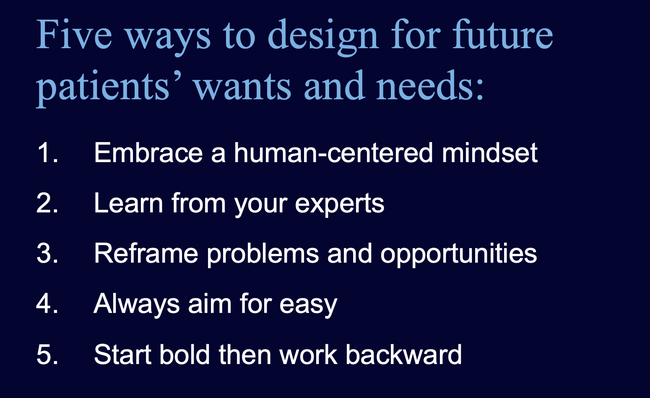 - Reframing problems and their potential solutions so they are centered on patients’ needs. “The most impactful solutions are created when you put things through [a patient’s] lens versus what you as an organization are trying to do operationally,” Worrell notes.