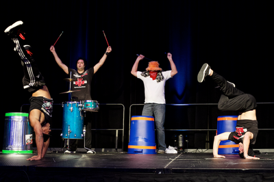 Do you know who is behind the orange hat? Denny Vandewater, SPFA President, joins in the fun at the Closing Session at Sprayfoam 2015. Photo by Maria Lewis