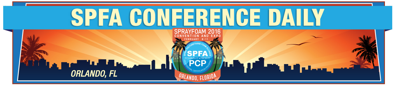 Want to be sure you know about everything going on during Sprayfoam 2016? A good start would be to check your inbox every morning during the show for our Conference Daily eNewsletter. If you are signed up to receive SPFA’s bi-weekly eNewsletter, you will automatically receive our Conference Daily eNewsletter. Or sign up here.