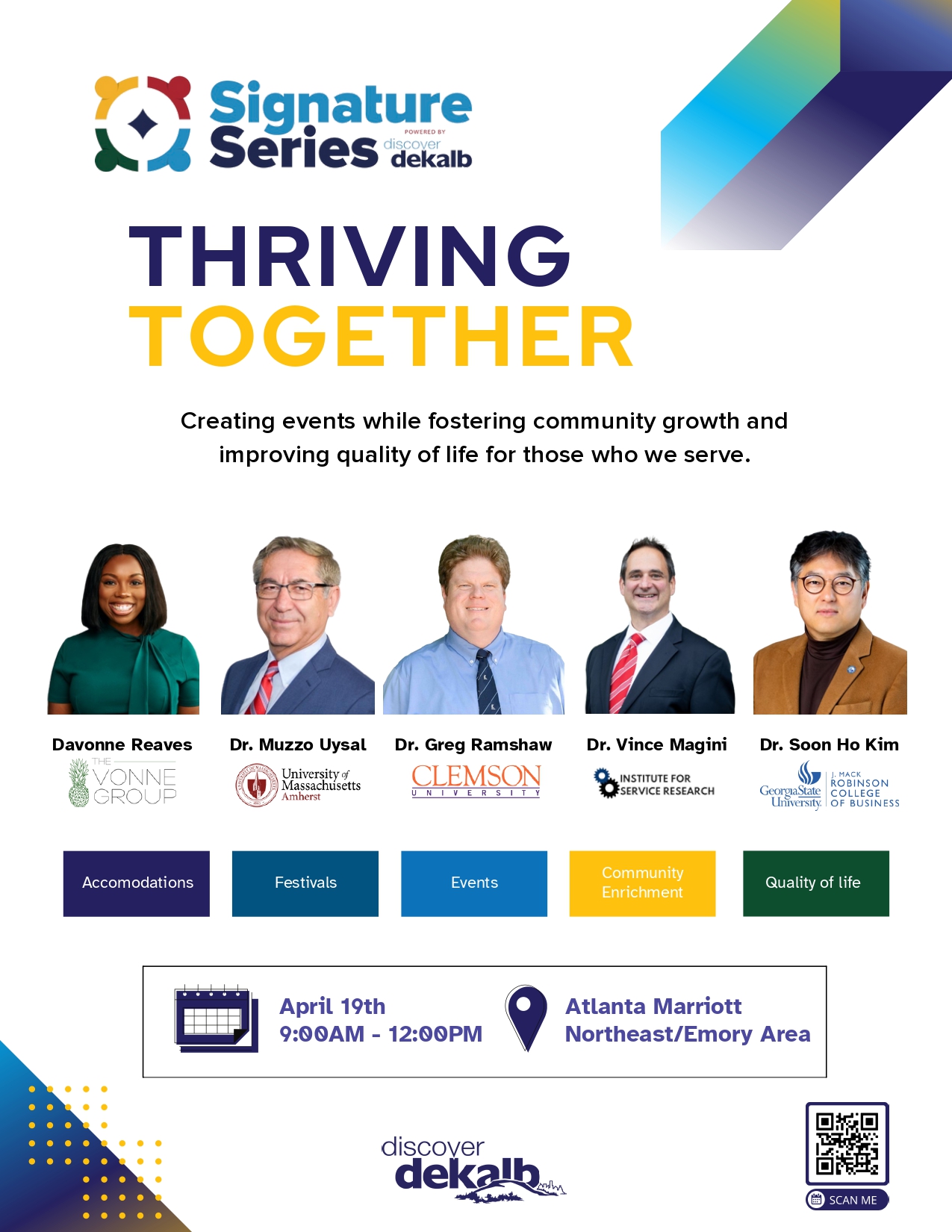 Thriving Together is an industry panel discussion brought to you by Discover DeKalb that will strengthen community festivals, economic impact, and enhance quality of life, for continued growth and community enrichment in DeKalb County.
