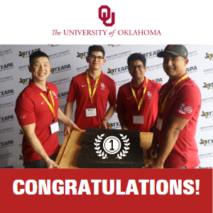 We especially want to recognize this year's winners: 1st place Oklahoma University, 2nd place University of Texas at El Paso, and 3rd place University of Texas at San Antonio!