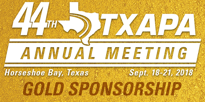 The 44th TXAPA Annual Meeting will take place September 18-21, 2018 at the Horseshoe Bay Resort in Horseshoe Bay, Texas near Marble Falls. Featuring award-winning golf courses, stunning views, and a world-class spa, the Resort is one of the premier luxury destinations in Texas. Rooms at the Horseshoe Bay under the TXAPA Group Rate are SOLD OUT. If you are interested in other accommodations, condominium rentals are available. Please call the hotel directly at (877) 611-0112 to inquire. We have contracted with the Holiday Inn Express in Marble Falls for additional rooms at a special rate of $115 for a double queen or single king. You may call the hotel and use the group code TAG Address: 714 corazon Dr, Marble Falls, TX 78654 Phone: (830) 693-0707 Get all the Details For a full preview of all the education, networking, and activities, click the link below! Every year the Live and Silent Auction benefiting the TXAPA Scholarship Program is generously supplied by our Members who donate auction items and cash. As we near September, the Scholarship Auction Committee is hard at work procuring items for the auction. If your company would like to donate, please download the donation form below. In order to make it easy for everyone to participate, we are happy to accept cash donations which will be used to purchase items on your behalf. Silent auction items usually have a cash value of around $1,000 and have included Yeti cooler gift baskets, electronic items, designer handbags, and memorabilia. Live auction items generally include event tickets, vacation packages, hunting packages, and exclusive, in demand items that are hard to find such as limited edition firearms. If you have questions or need ideas as to what to donate, please contact the TXAPA offices at (512) 312-2099. Gold Sponsorships are on sale now for $2,000 and include the following benefits: