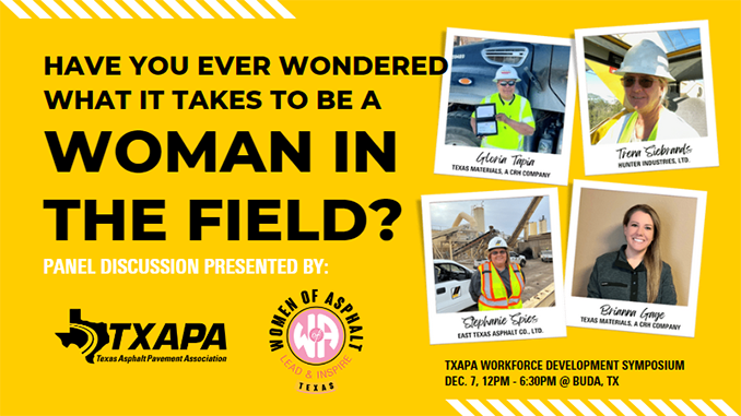Learn more about the Texas Asphalt Pavement Association. Connect with us on Facebook, Twitter, or LinkedIn. If you weren't able to make it to our Workforce Development Symposium in December, then you missed one heck of a great panel discussion. Luiza Barros, QC Manager for Texas Materials – A CRH Company, and Women of Asphalt Education Subcommittee Chair, moderates the discussion among four asphalt industry veterans. Nominated to participate, our panelists operate heavy equipment, make critical decisions, and carry the weight of responsibility for quality outcomes. They are also women. Learn what it's like to be a woman in the field—the guts, the glory, and the very real opportunities for upward mobility and a secure future.