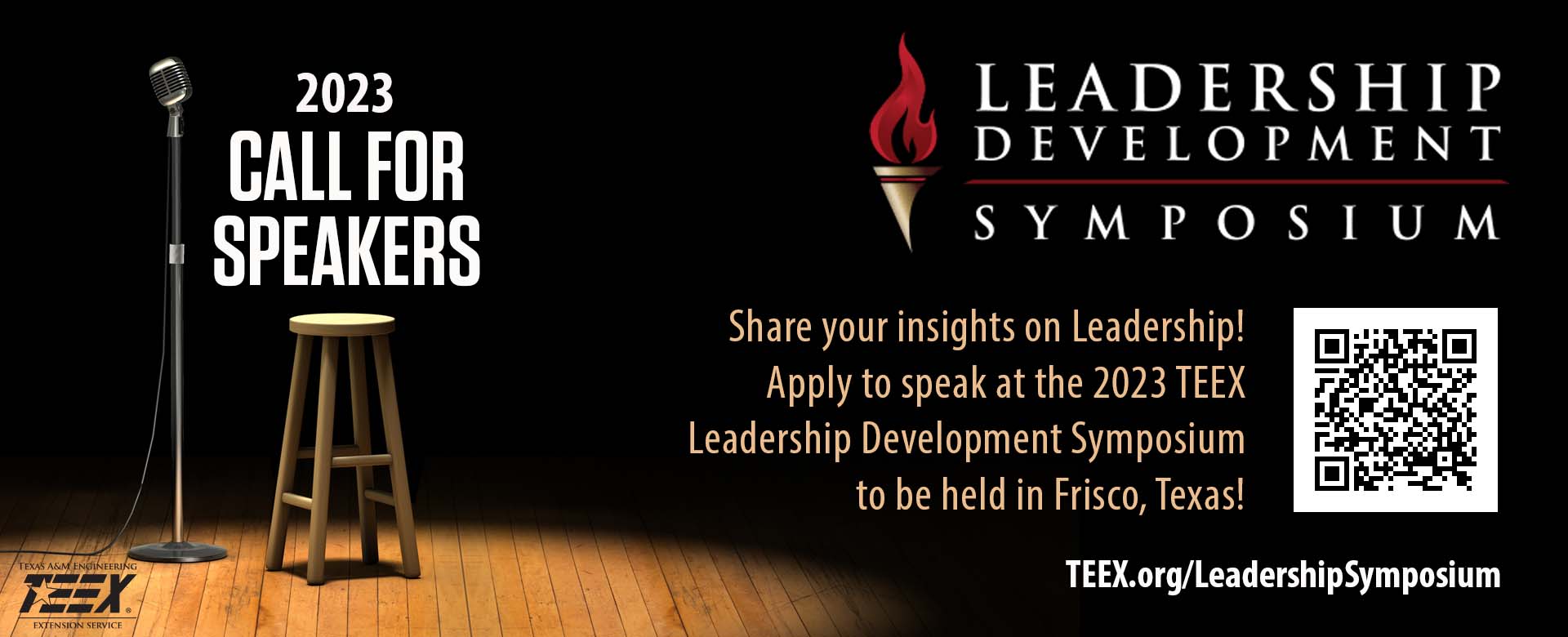 The Texas A&M Engineering Extension Service Emergency Services (TEEX) Training Institute announced that the 15th Annual Leadership Development Symposium has been scheduled for 2023 in Frisco, Texas. The symposium is a two-and-a-half-day event attended by hundreds of emergency responders who come to listen to presentations that focus on how to improve their leadership and management skills. TEEX is seeking speakers interested in sharing their expertise during breakout sessions, which are scheduled in two-hour blocks, though speakers may present the same one-hour session repeated back-to-back or have a two-part session. Some areas of expertise where TEEX is seeking presentations include: • Motivational Leadership • Leadership Strategies • Financial Management • Physical and Mental Fitness and Wellness • Organizational Development • Personnel Management Applications are due by July 15. Follow the link below to apply.