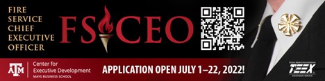 The next TEEX Fire Service Chief Executive Officer (FSCEO) program will be held in College Station, TX Oct. 17-21. The application period for the October 2022 class will open on July 1 and close on July 22. Please note: