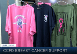 SOURCE:KRIS 6 NEWS Throughout the month of October, Corpus Christi Firefighters will be wearing pink on duty and in the community to support the fight against Breast Cancer. Firefighters are also selling shirts to raise money for Cancer research. "All the proceeds from our shirt sales, which is about $100,000, we give back to the community. We also give, not much but a little bit, to firefighters in the surrounding area who are battling Cancer. That's just to kind of help offset cost for things like going to MD Anderson, " said Johhny Stobbs, President of Professional Firefighters of Corpus Christi.