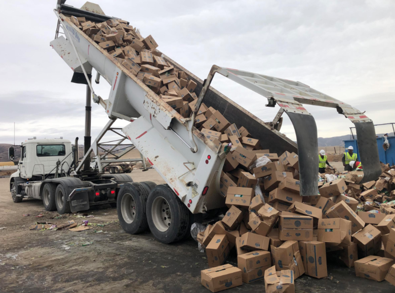 this photo from KAZU in San Luis Obispo, CA, shows a truckload full of freshly packaged romaine dropped off at the Johnson Canyon Landfill and Recycling Center in Gonzales. |