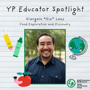 We are excited to spotlight Giangelo “Gio” Leos this month as part of the new USCC YP Educator Spotlight program! Gio works at Food Exploration & Discovery, where they include composting/soil education in their K-12 program that grows with students. The organization’s composting/soil education starts with their Compost Champions program for second and third graders. Second graders dig into compost and soil science and support their school compost bin, while third graders maintain a worm bin in their classroom. The program continues to grow with students as Food Exploration and Discovery infuses composting lessons into middle and high school programming.