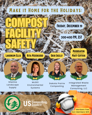 The webinar will take place on Friday, December 19, at 3:00 PM (EST). Don't miss this lineup of industry experts, with decades of combined experience in composting industry safety standards!