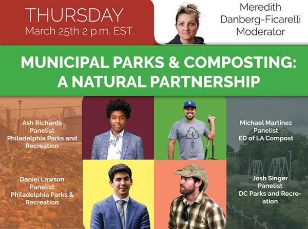As an undergrad, she studied emerging challenges in environmental justice, resource management and climate change mitigation. Hessa volunteered at NC State Compost Learning Lab for two summers before moving to Morehead City and studying the effects of ocean microplastics pollution on seabirds. Solid waste management is a big area of interest for Hessa, and accelerating efforts toward strong management and mitigation are at the center of her career goals. Hessa's interests include environmental regulations, science communication and community outreach, and she hopes to pursue a degree in environmental law in the future. Hessa can be reached at support@compostingcouncil.org. Join Dan Lawson and Ash Richards, City of Philadelphia; Michael Martinez, LA Compost; and Josh Singer, Washington, DC Parks, for a discussion of how composting and compost use is a particularly good combination for government parks programs and urban agriculture.