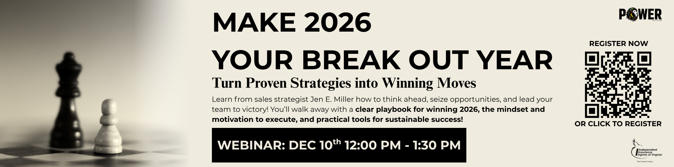 ABEN provides On-Demand Classes! From the Playground to the Boardroom: Foundations of Empowering Trust and Ethical Leadership 1 Ethics | Access for 90 days Member Price: $28 / $21.00 with Member Discount (Use code Fall2025) Non-Member Price: $40 Planning for Success: Strategies for Insurance Agency Growth in Today's Market 3 CE | Access for 90 days Member Price: $84 / $63.00 with Member Discount (Use code Fall2025) Non-Member Price: $120 Commercial Property Claims, Coverages, and Consequences 3 CE | Access for 90 days Member Price: $84 / $63.00 with Member Discount (Use code Fall2025) Non-Member Price: $120 For additional course options, use the IIAV Education Calendar or visit the ABEN Catalog! E&O Risk Management: Power of Prevention: Agency Risk Management Essentials of Management IIAV Webinar | Dec 3 | 9:00 am - 12:00 noon | #229098 | 3 OGI | Register Now Member Price: $84 | Non-Member Price: $120 Make 2026 Your Breakout Year - Turn Proven Strategies into Winning Moves IIAV Webinar | Dec 10 | 12:00 pm - 1:30 pm | Register Now Member Price: $100 | Non-Member Price: $150