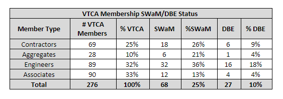 - VTCA should identify and help promote certified SWaM & DBE members. This will not only help SWaM & DBE find business opportunities, but it will also help prime firms identify and team with SWaM firms and achieve their SWaM or DBE goals.