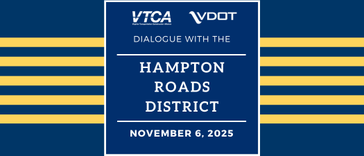 Join us, along with industry peers, Hampton Roads District Staff and local leaders for education and networking at this year’s Hampton Roads District Dialogue. The program will include insight into VDOT’s transportation program specific to the Hampton Roads District. New District Engineer Mike Davis will host this year’s dialogue and provide a strategic overview of District priorities and ongoing initiatives. VTCA’s Gordon Dixon will share an update on VTCA’s legislative activity and then introduce a panel of industry leaders who will share perspectives from VTCA’s three primary member sectors – Contractors, Engineers, and Aggregate Producers. Wrapping up the half-day program, attendees will continue in-person dialogue at the themed lunch roundtables with VDOT and industry professionals.