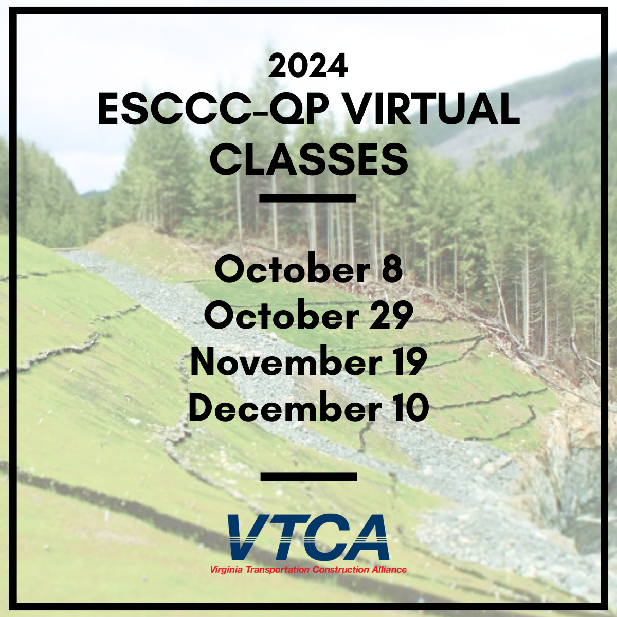 All Contractor’s Erosion and Sediment Control Contractor Certifications (ESCCC) issued to date will no longer be valid as of July 1, 2025. The premature end is effective regardless of the date shown on the certification card.