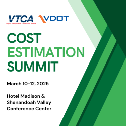 The VTCA-VDOT Cost Estimation Summit is a unique once-a-year opportunity to gain the most up-to-date information on transportation infrastructure cost estimating here in the Commonwealth of Virginia. Join us on March 10-12 at the Hotel Madison & Shenandoah Valley Conference Center!